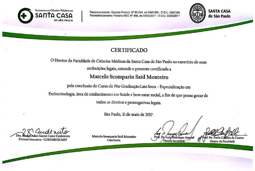 Especialização em Endocrinologia: Santa Casa de São Paulo (ISCMSP)2015-2017.