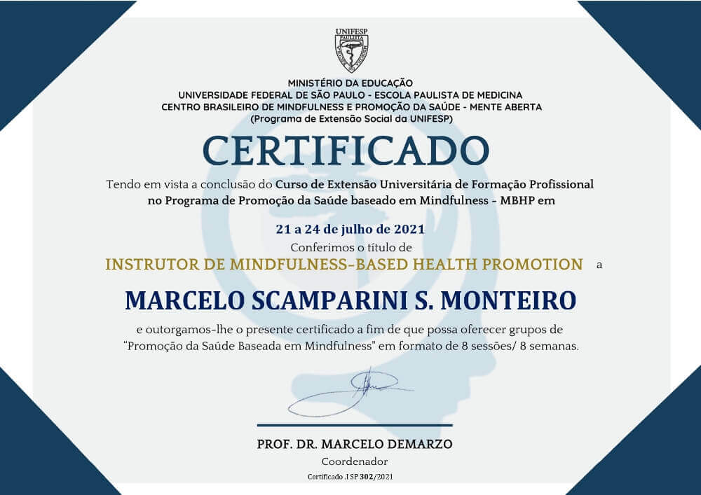 Instrutor de Mindfulness: Programa Mindfulness Based Health Promotion (MBHP);