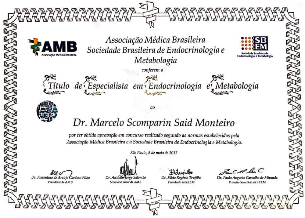 Membro da Sociedade Brasileira de Endocrinologia e Metabologia